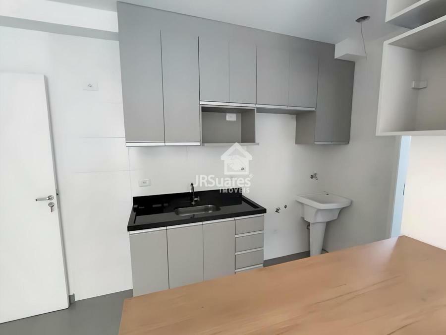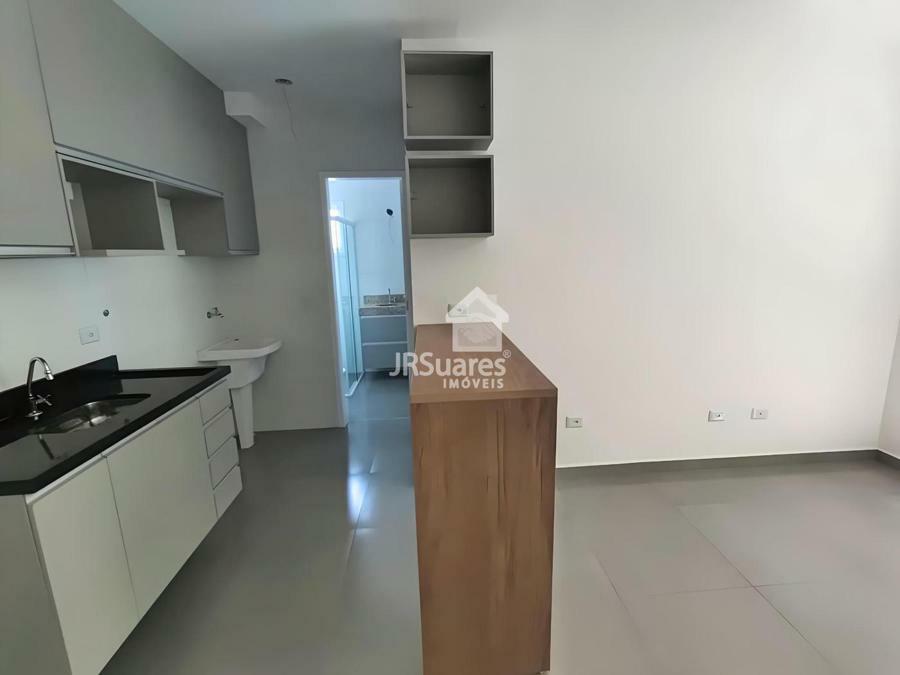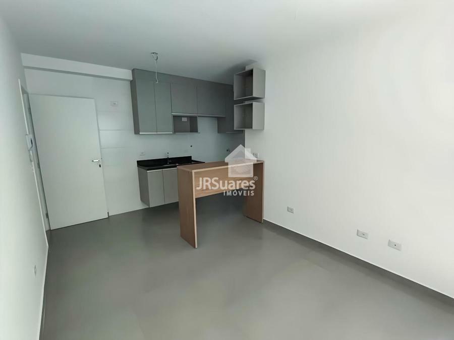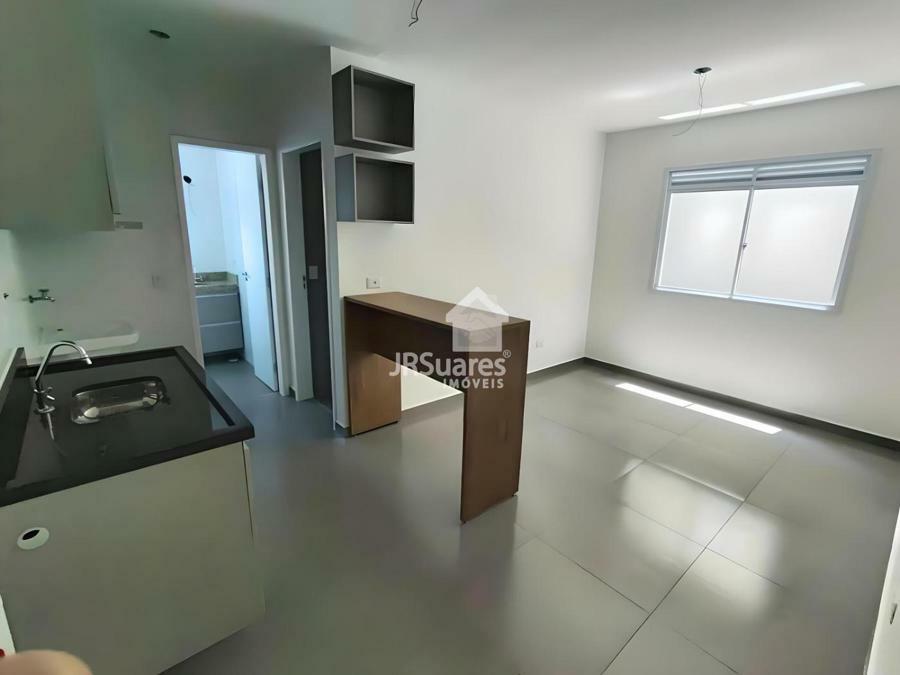 Apartamento 30m² com 01 dormitório, sala de estar, cozinha, banheiro e área de serviço.